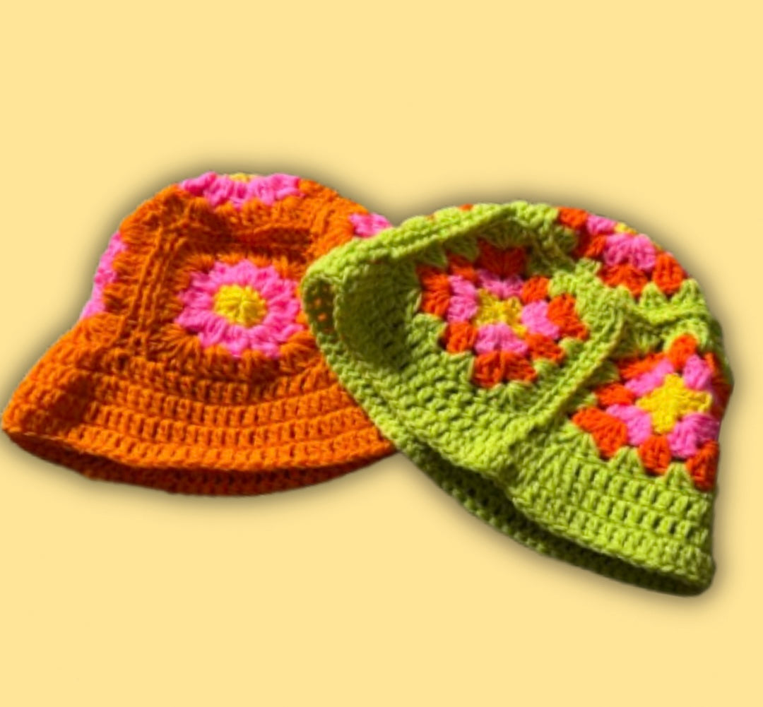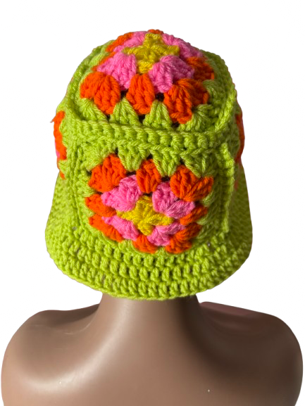 Zesty Bae- handmade flower motif crochet bucket hat cotton blend adult size